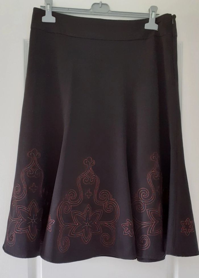 Jupe femme longue mi-mollet doublée polyester 63 % polyester 33 %viscose 4 % élasthanne Tour de taille 88 cm hauteur 70 cm #kate9036
