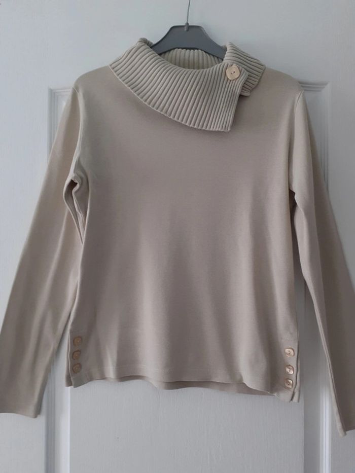 Pull femme léger col bouton 100 % coton taille 2 = 38 Epaules 38 cm hauteur 53 cm Dessous aisselles 45 cm #kate9036