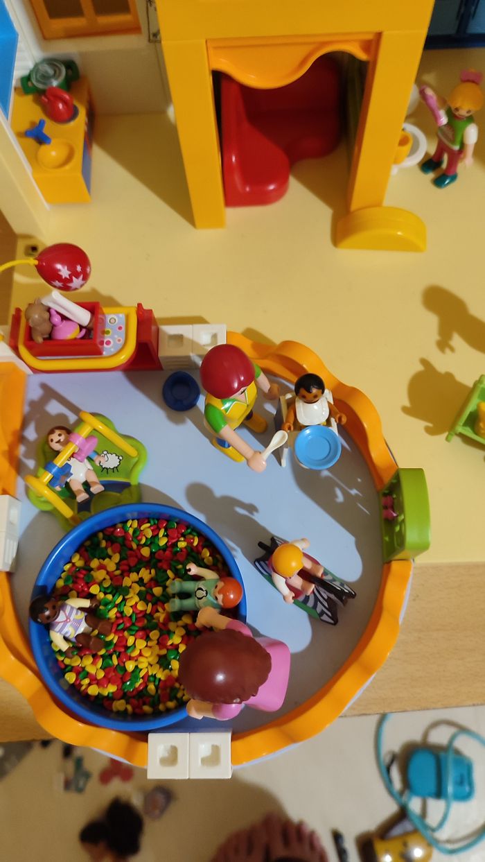 Garderie playmobil avec crèche + piscine à balles, utilisé mais resté en bon état, avec tous les meubles authentiques. PLAYMOBIL 5567 garderie- City life PLAYMOBIL 5570 crèche - City life PLAYMOBIL 5572 piscine à balles - City life