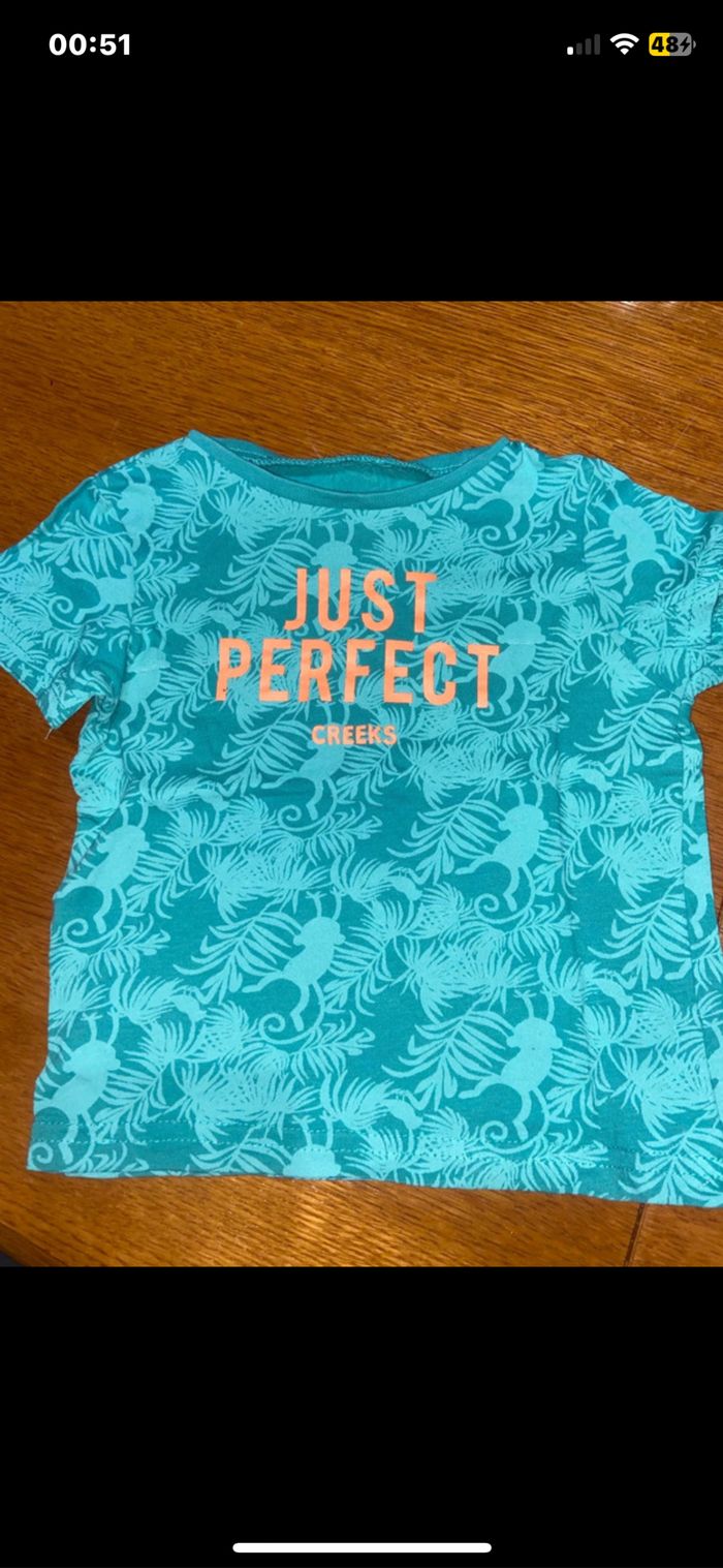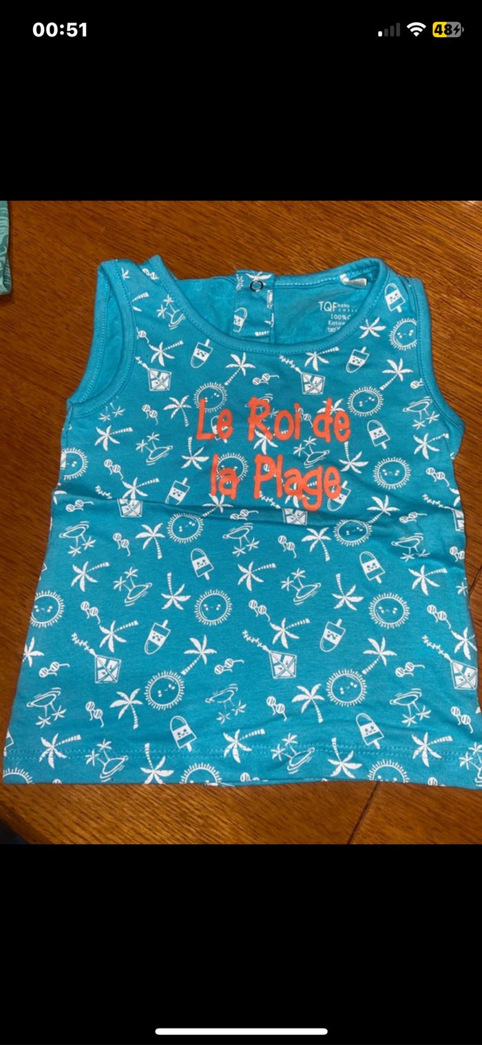 ✏️tee shirt vert marque Pat & Ripaton taille 12 mois ✏️débardeur bleu marque TQF baby taille 12 mois