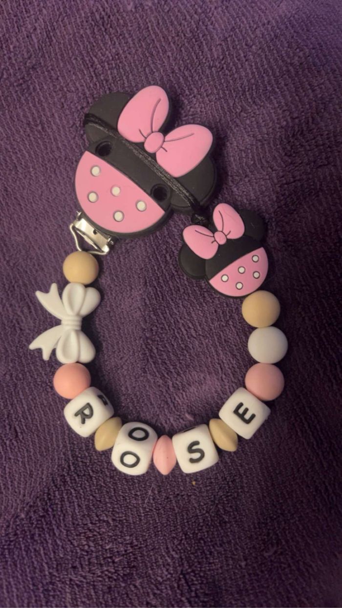 Attache tétine personnalisé en silicone ou en bois au souhait de l’acheteur . Personnalisable au choix de l’acheteur que ce soit la couleur comme le prénom ou le thème . Le fil est doublé pour plus de sécurité tout le long de l’attache tétine. N’hésitez pas à me demander et regarder mon dressing. Une photo vous sera envoyée avant l’expédition pour vous ayez un aperçu du rendu. Tous les produits sont réalisés avec du materiel spécial conçu aux bébés , enfants.