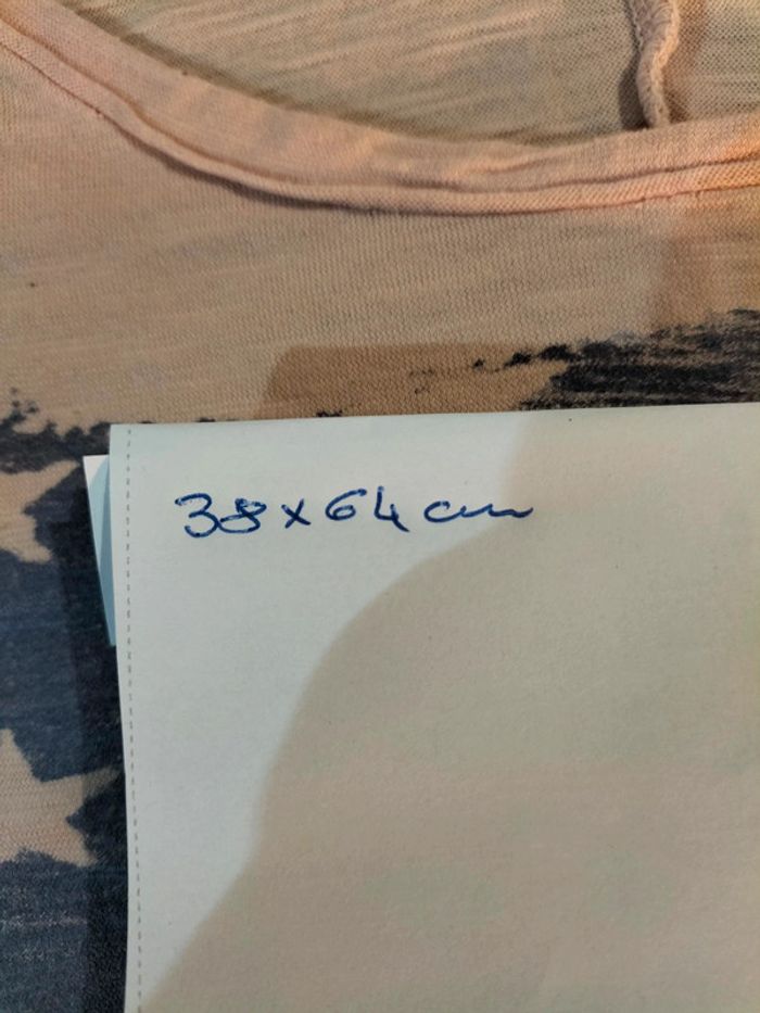 T-shirt manches longues dont je ne sais plus la taille, mais ça a l'air petit. Il y a un petit trou au dos.