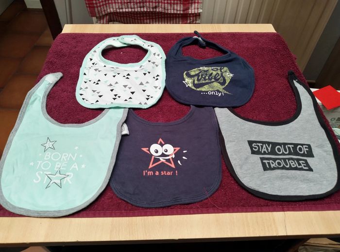 Lot n°6 5 petits bavoirs à scratch Laver avant la vente