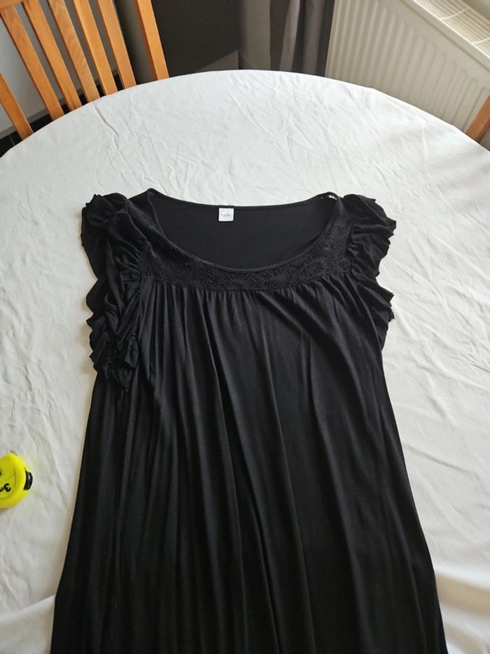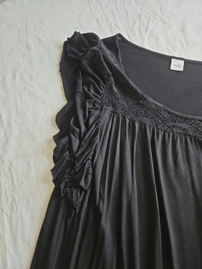 T-shirt avec dentelle au col et manches frou-frou Largeur épaules 42cm Largeur aisselles 55cm Longueur 82cm #vanessavadfemmegrandestailles #camaieutaille4 #tshirtdentellestaille4 #tunique4648femme