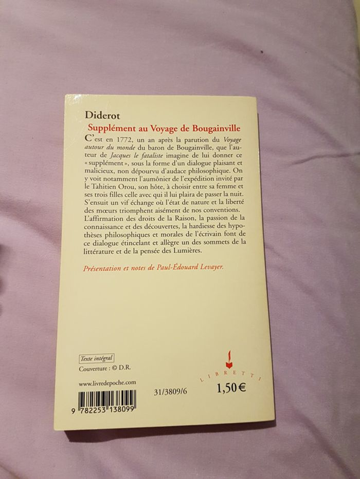 A vendre livre "Supplément au voyage de Bougainville" N'hésitez pas à jeter un coup d'oeil sur mon dressing (d'autres livres en vente). Une réduction dès 2 articles achetés 😉 #elodieeden45_livres