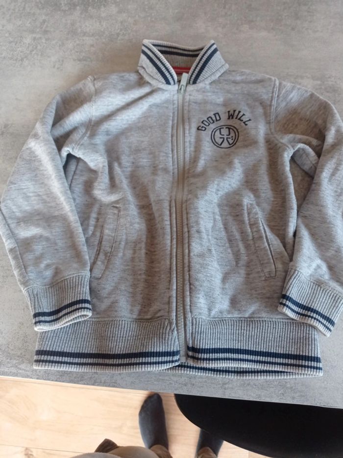 Gilet 8 ans zippé Okaïdi couleur gris Pas de tâches ni de trous #titiethan8ans