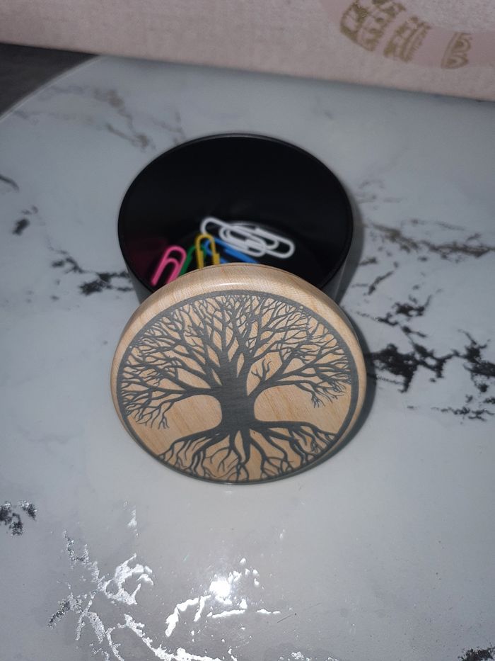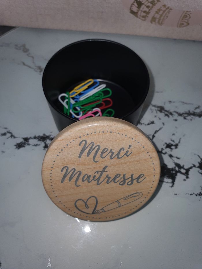Boite en métal de 5 cm de haut sur 6.5 cm de large. Idéal pour cadeau ou décoration d'intérieur. Vous pouvez y ranger des petits objets comme des trombone, une bougie, des petits bonbon ou tous autres choses. Personnalisable suivant vos envie. N'hésitez pas. Vendu à l'unité.