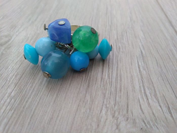 Bague ajustable bleue et verte - photo numéro 1