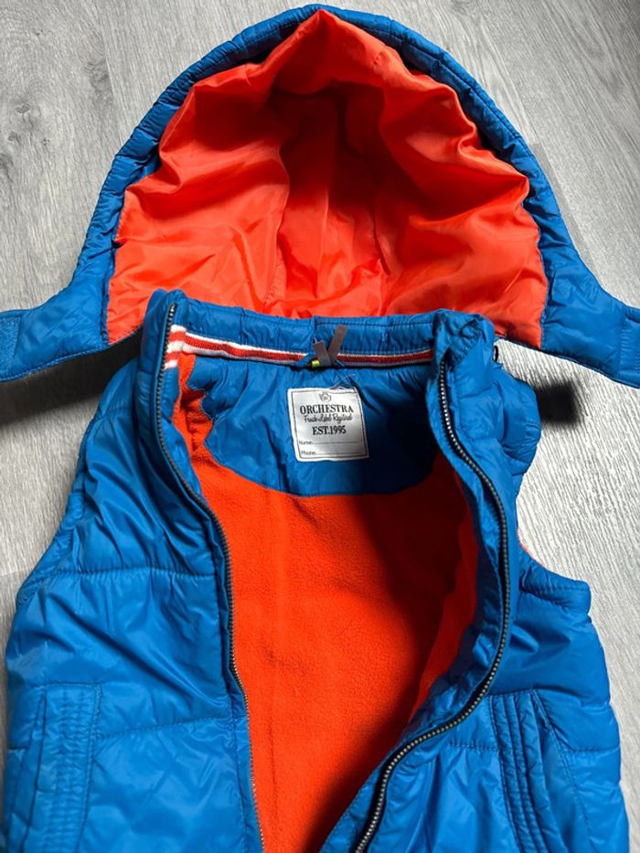 En parfait état Très belle doudoune sans manches Mode et tendance orange et bleu La capuche s’enlève