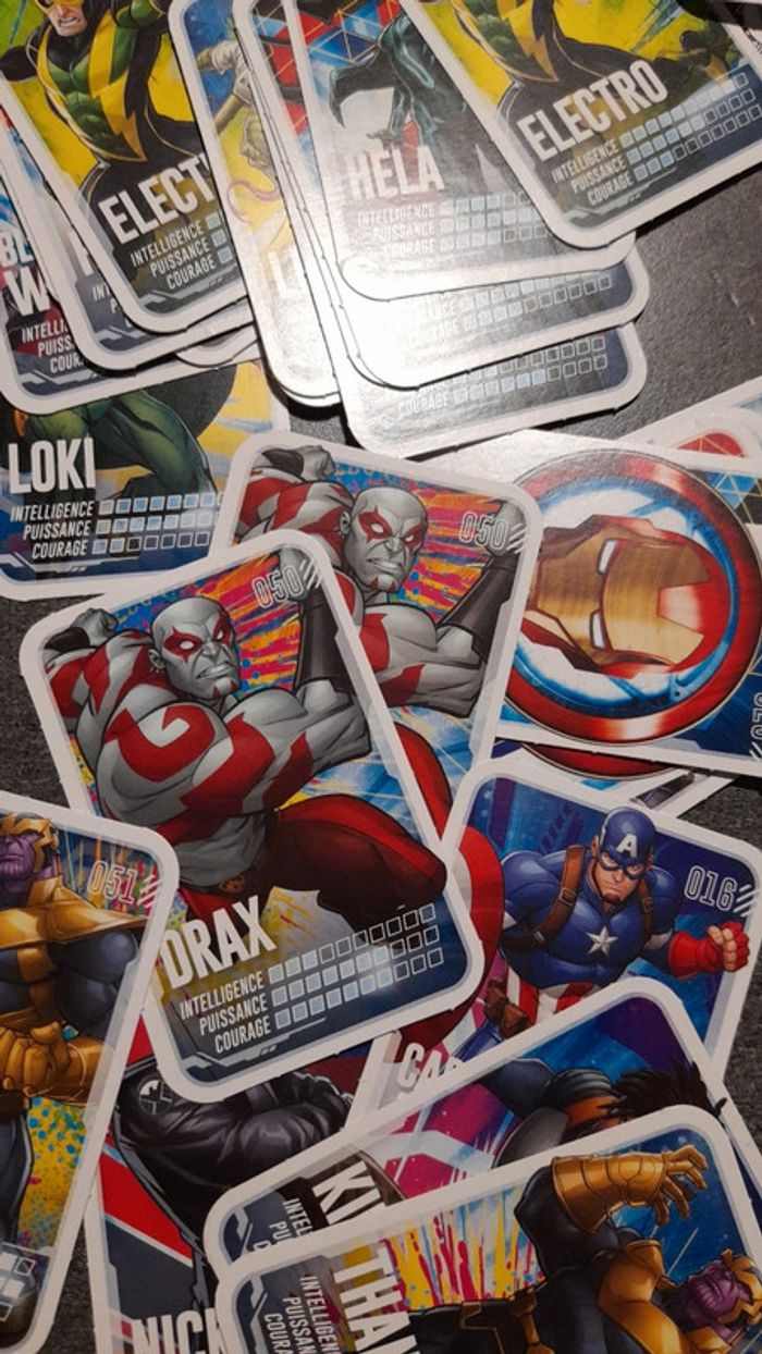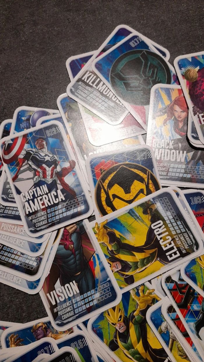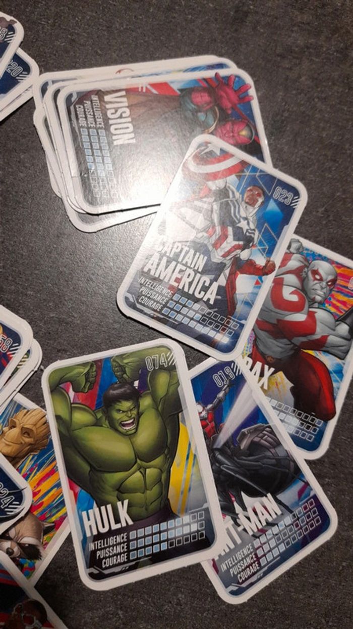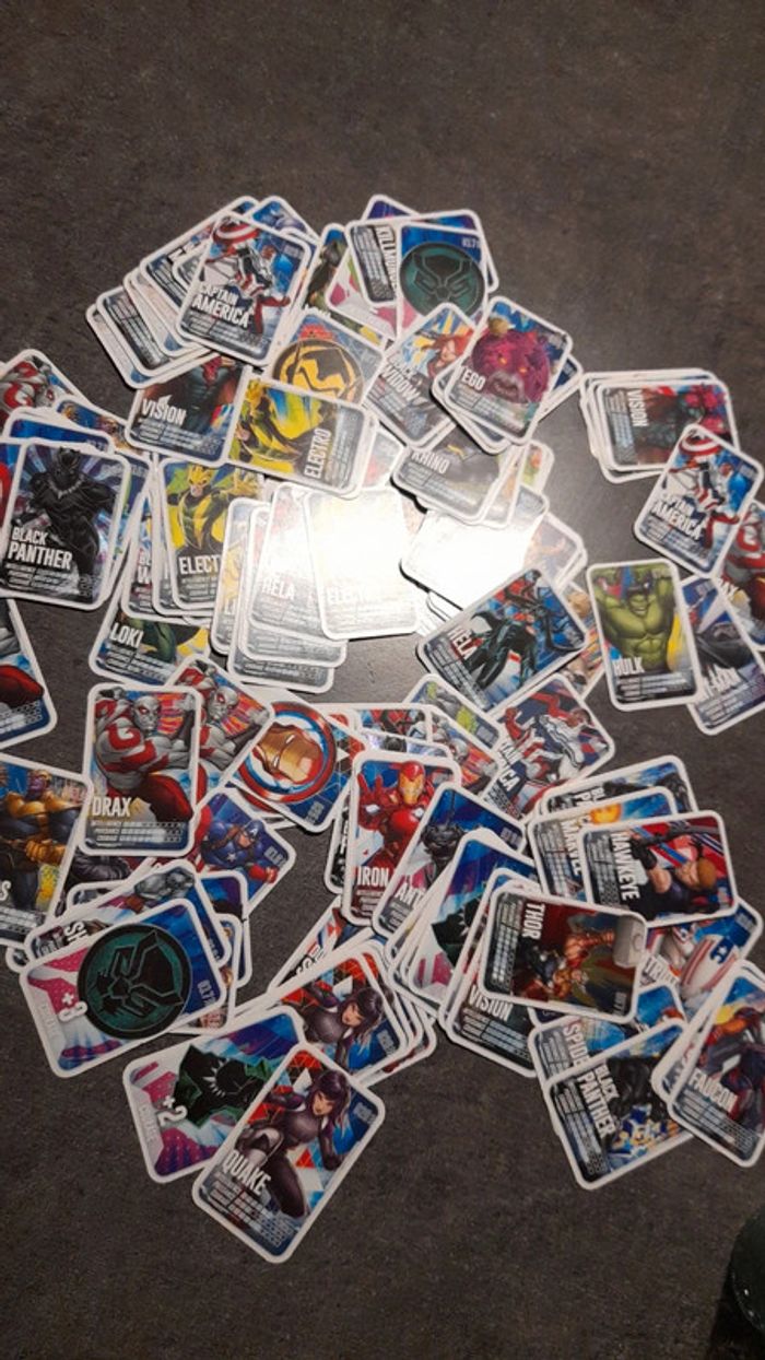 Loy de cartes marvel, 153 au total, marvel "pars en mission" n'hésitez pas à me demander les numéros si besoin. Très bon état