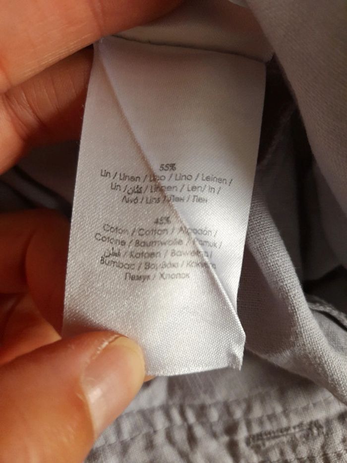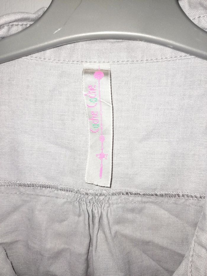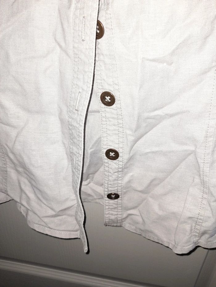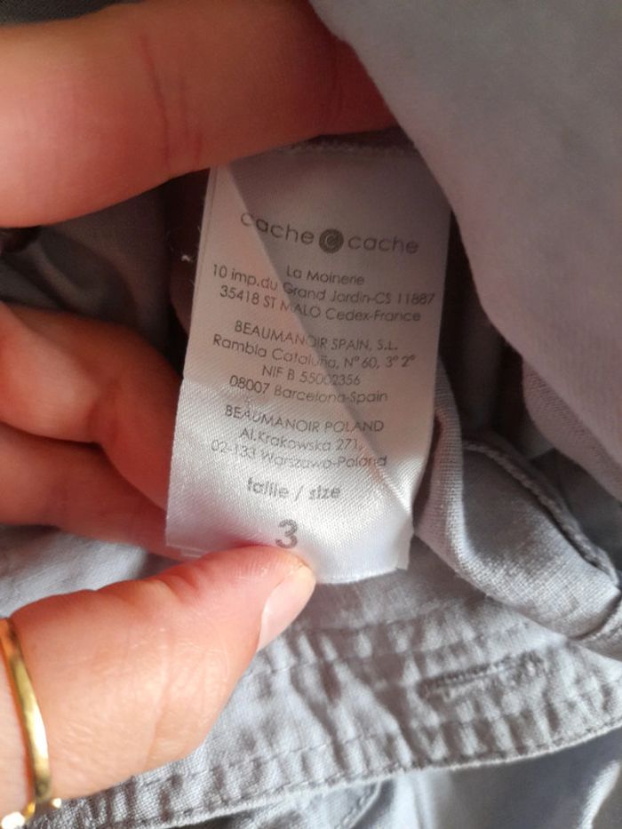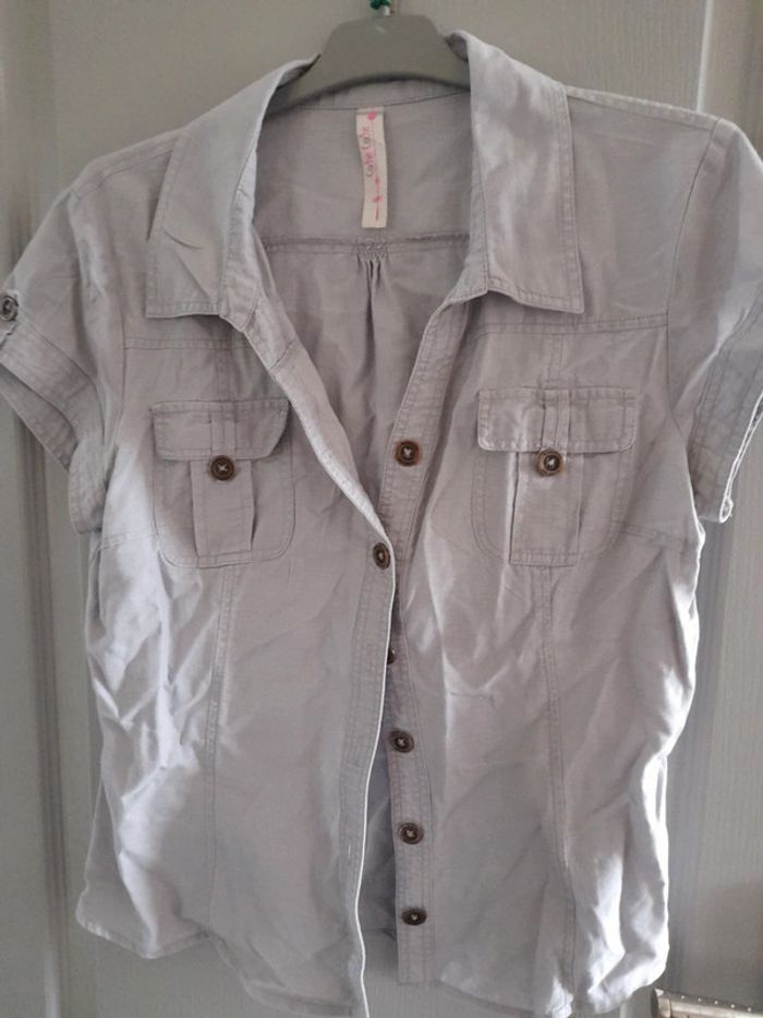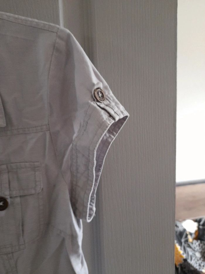 Chemise grise en très bon etat de marque cache cache taille 3 manches courtes et boutons. 55% lin 45% coton