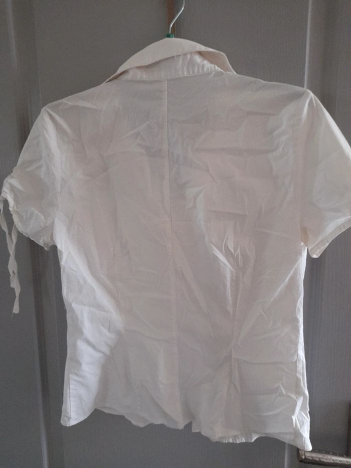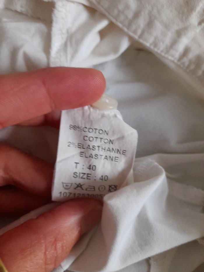 Chemisier blanc avec col et manches courtes Taille 40 composé de 98 % coton et 2% d'elastanne