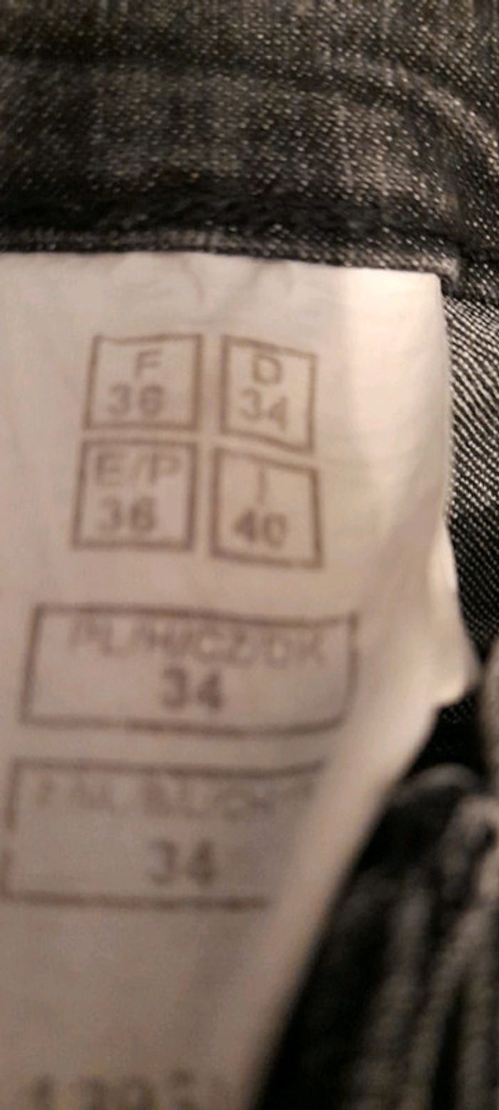 Jean en bon état de couleur gris taille 36. Il est composé de 75% de coton, 23 % polyester et 2% elastane.