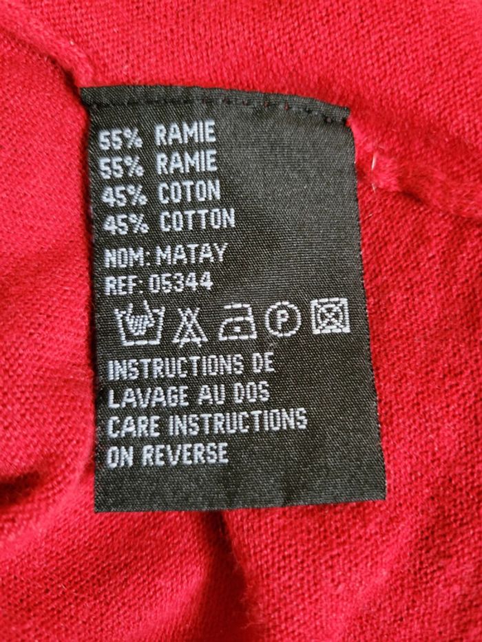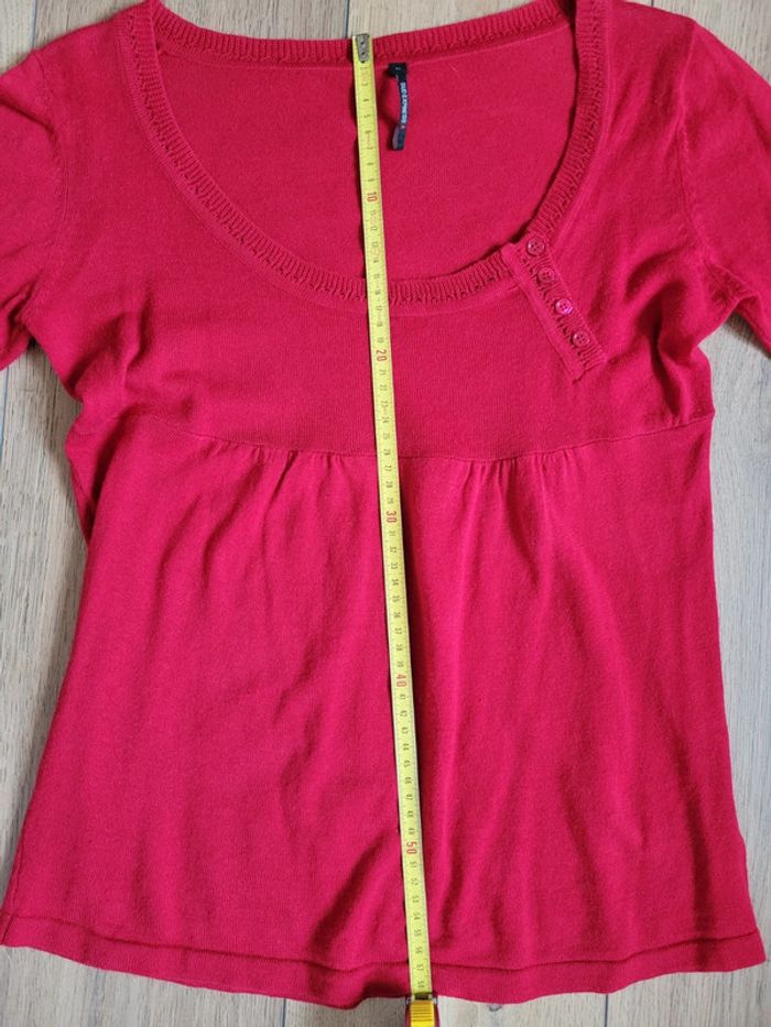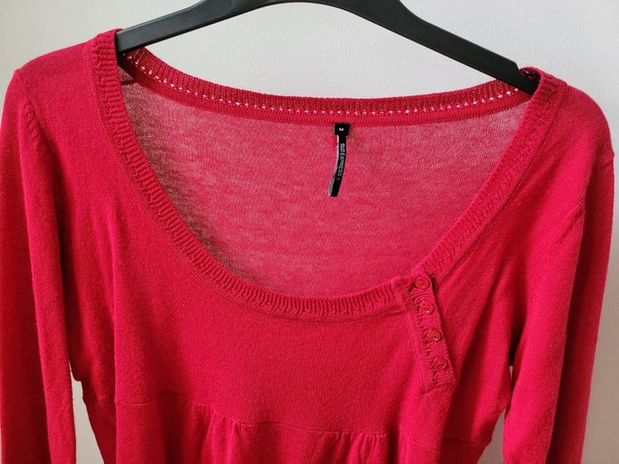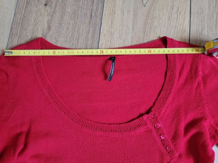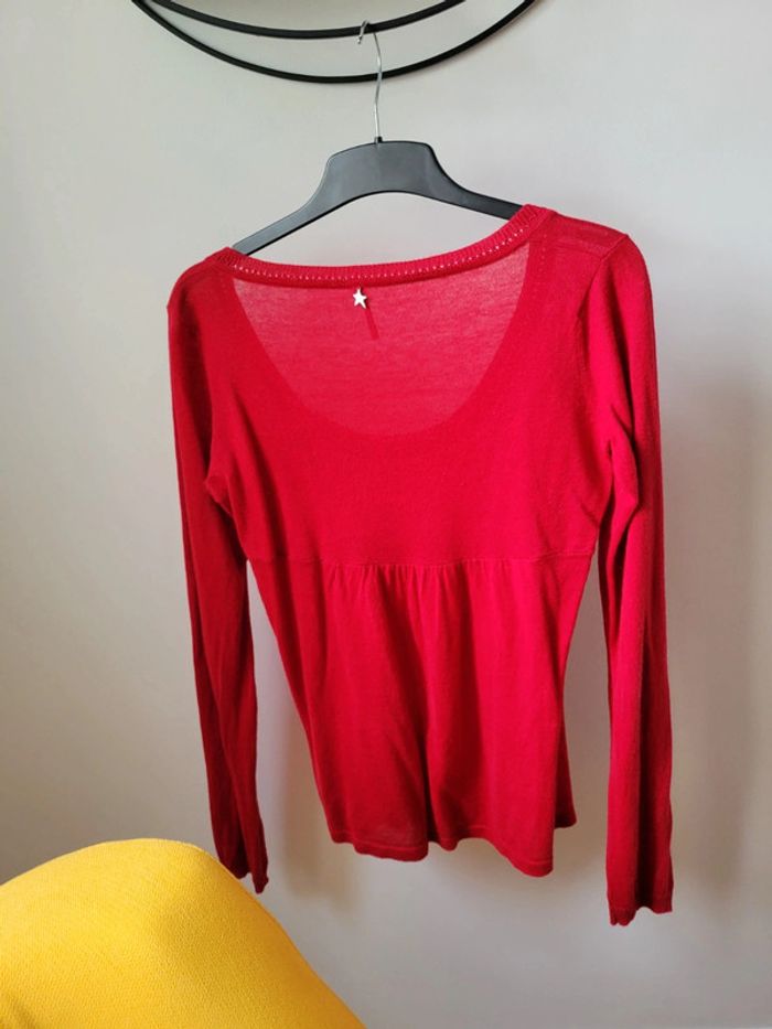 Joli pull fin et décolleté rouge sud express. Très peu porte car trop juste pour moi. Taille M 55%ramie 45% coton. Lavage à la main à l eau froide. #ka_14vetementsfemme