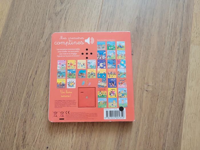 Livre 6 comptines (une poule sur un mur, jamais on n a vu, une souris verte, un petit cochon..) cartonne en bon état (couverture marquée par un pliage) sonore avec piles. #ka_14livresenfants