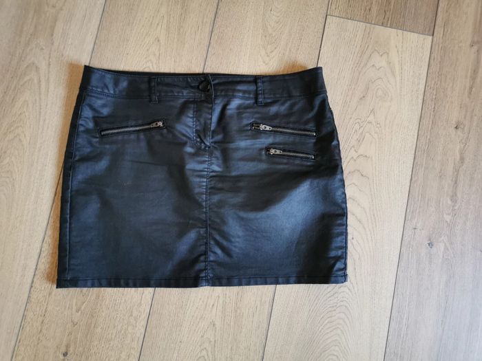 Très jolie mini jupe noire enduite etam (hauteur 36 cm) comme neuve taille 40 59% coton 39% polyester #ka_14vetementsfemme
