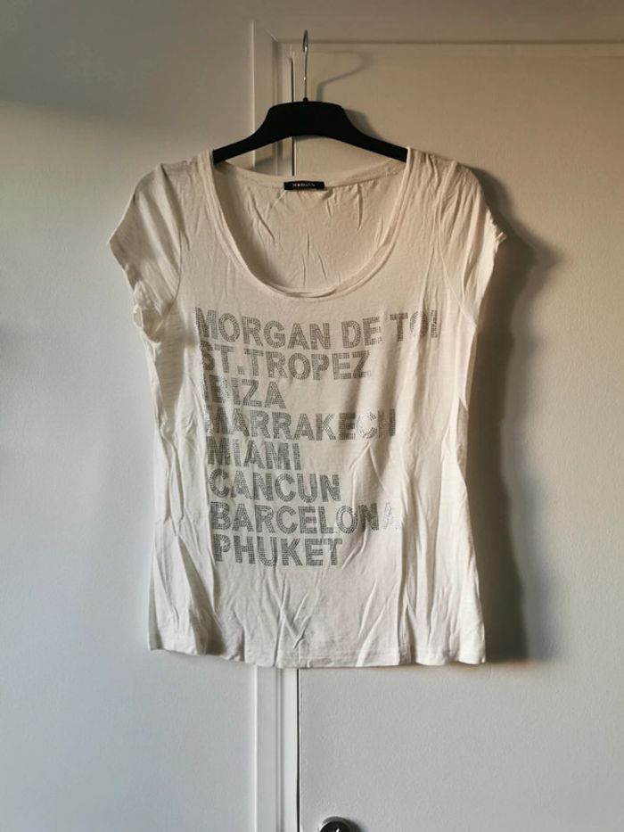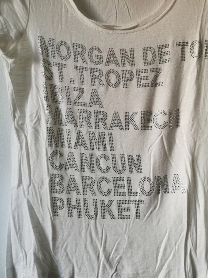 Tee shirt blanc morgan en parfait etat porte 2 fois. Taille 38. #ka_14vetementsfemme
