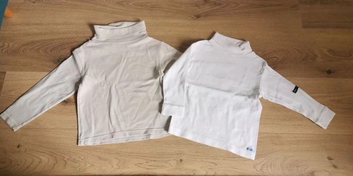 Lot de 2 ts 1 blanc decathlon plus petit et 1 plus grand okaidi beige. En bon etat. Taille 4 ans #ka_14vetementsgarcon4ans