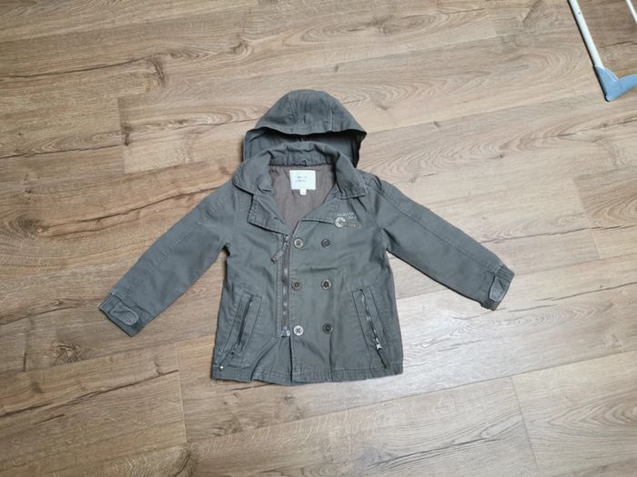 Jolie veste kaki style aviateur en bon état (leger accroc en bas derrière). Capuche amovible. Taille 4 ans #ka_14vetementsgarcon4ans