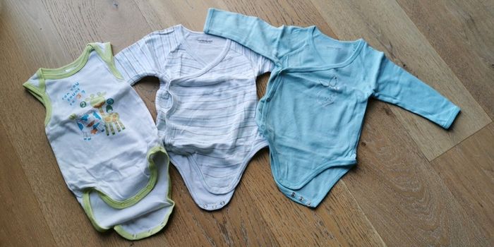 Ensemble 2 bodies vert baudet manches longues et 1 C&A en tres bon état. Taille 12 mois #ka_14vetementgarcons12mois