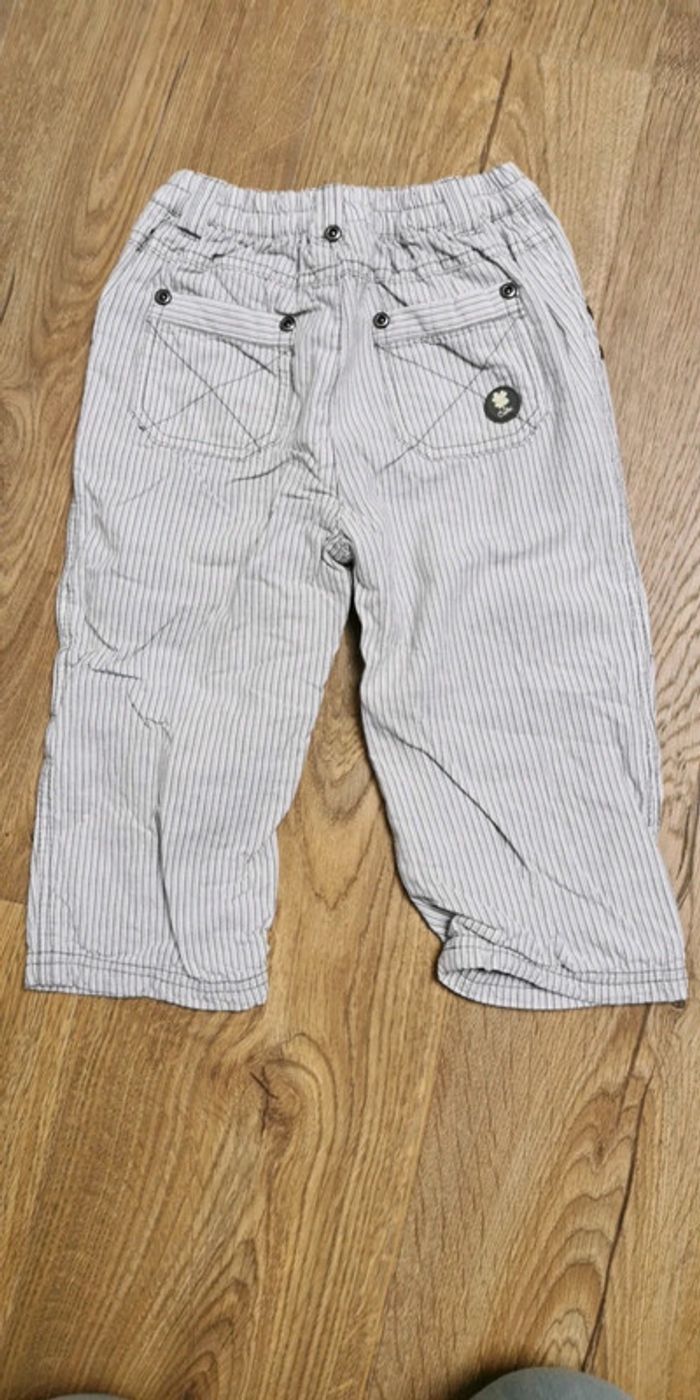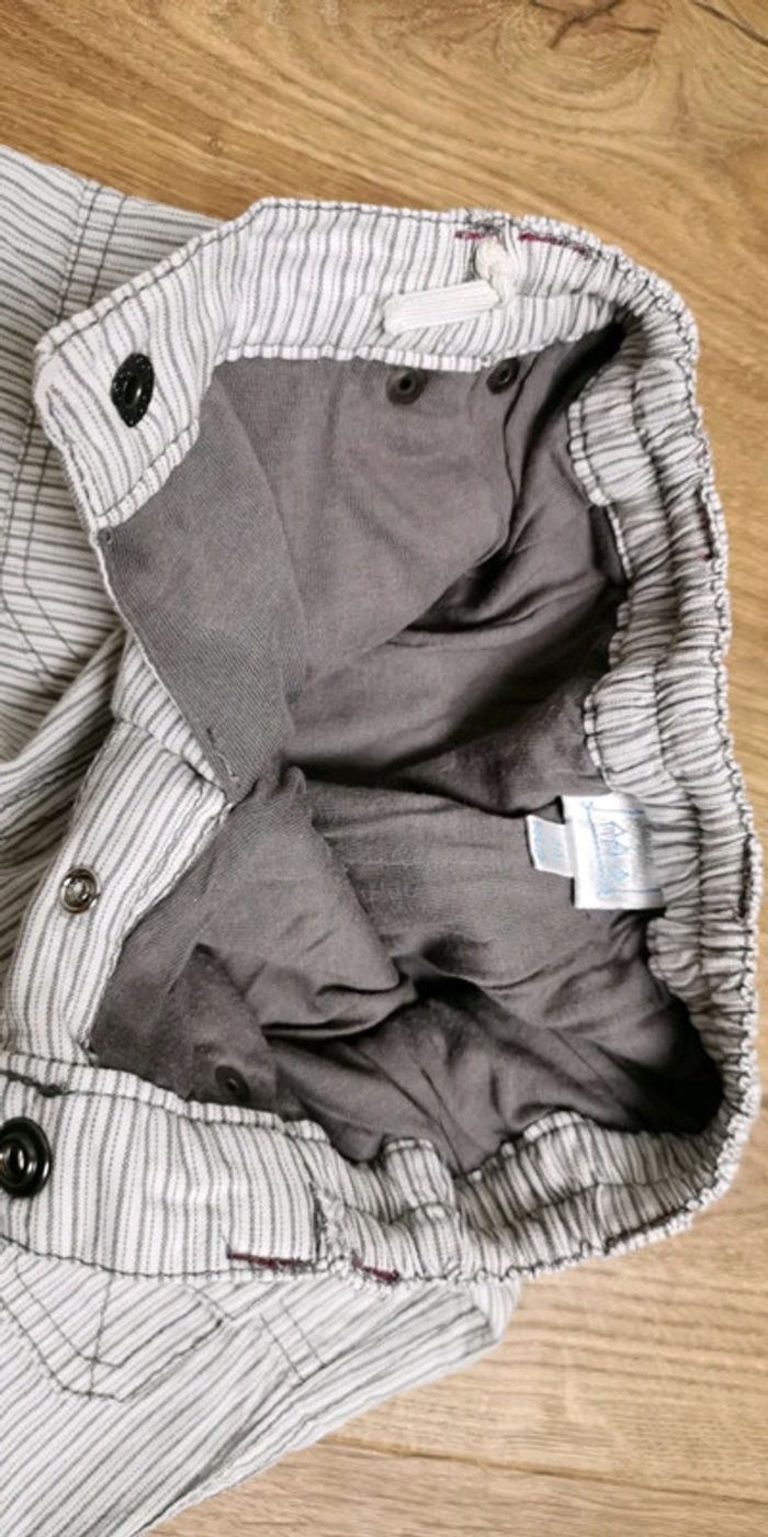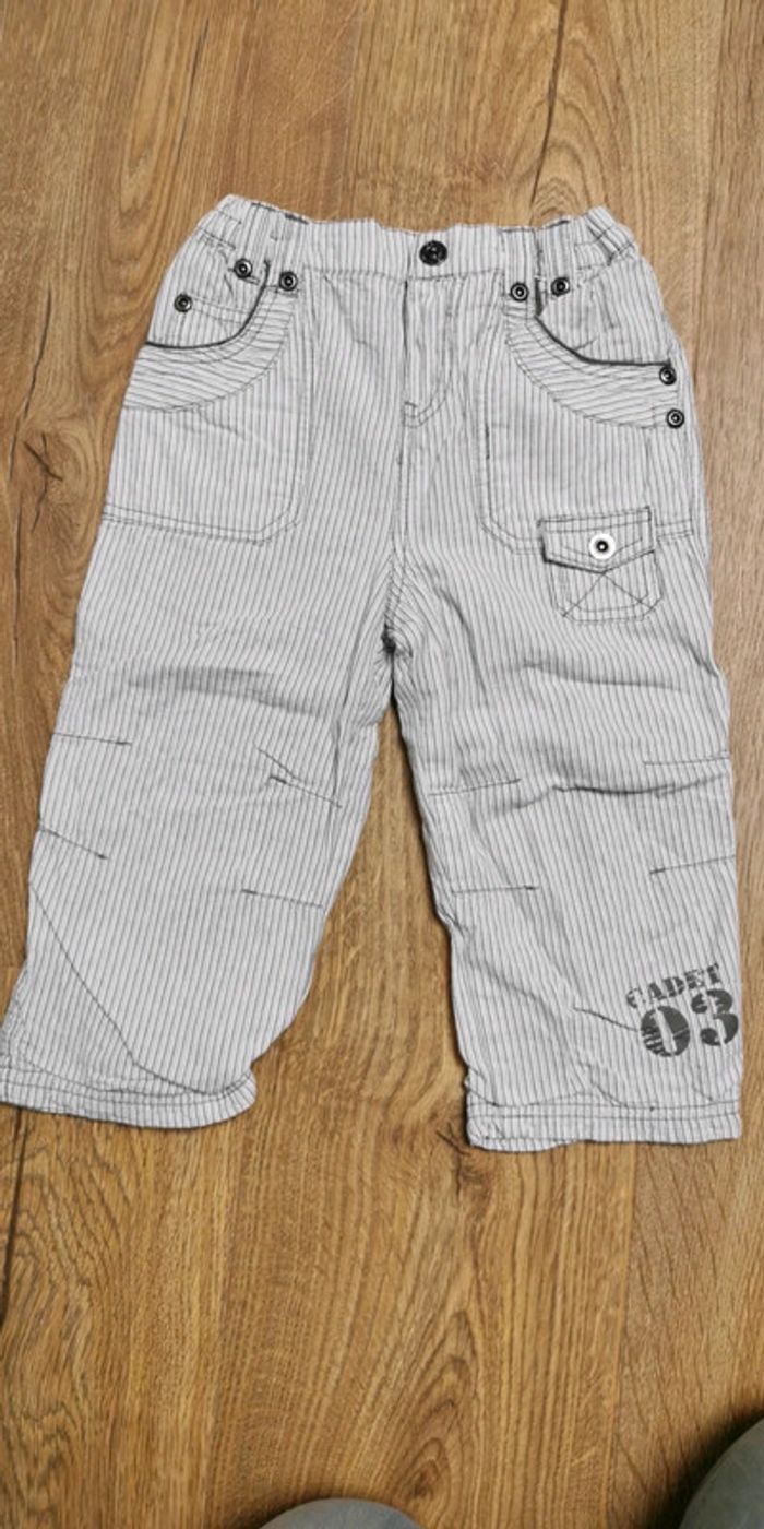 Joli pantalon cadet rousselle blanc raye gris en bon etat (défaut le bouton qu il manque à l interieur pour régler, je l ai fait avec un noeud) Taille 24 mois #ka_14vetementsgarcon24mois