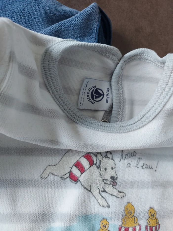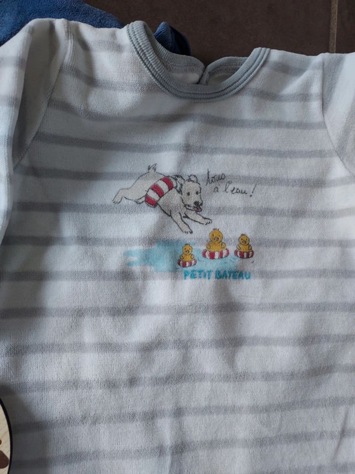 2 pyjamas petit bateau Velours 6 mois Ouverture dorsale Le dessin devant sur le bleu est un peu effacé