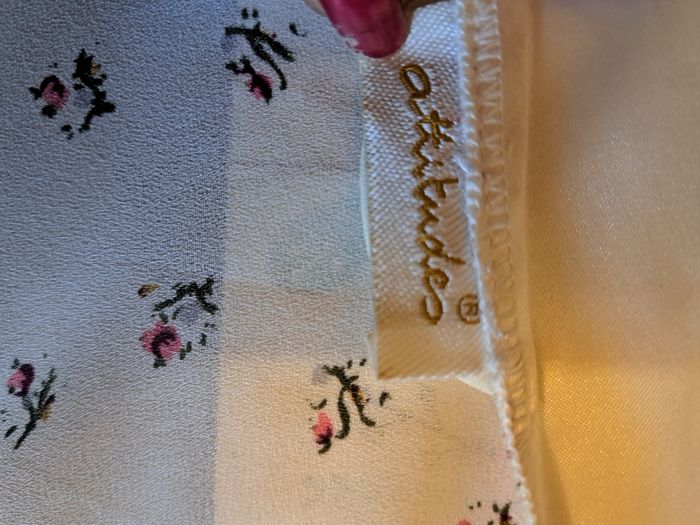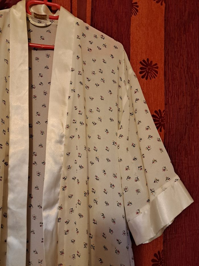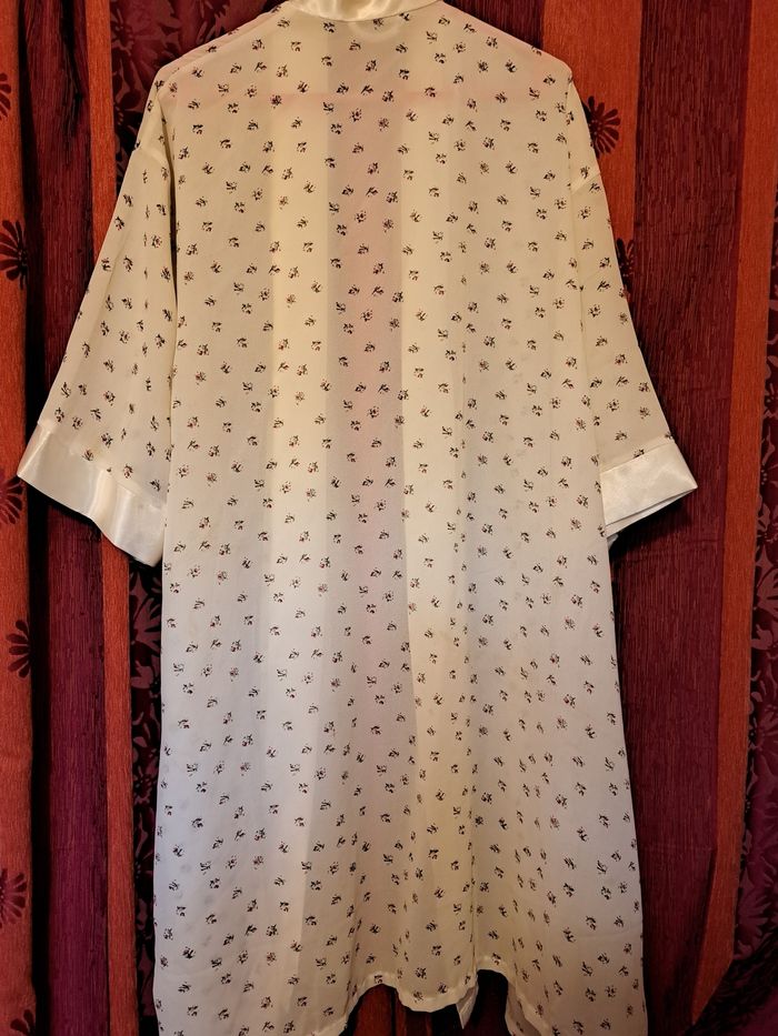 Robe de chambre femme Marque Attitudes Taille unique Couleur crème avec dessins de fleurs Manches 3/4 large Imitation satin mais 100% polyester État impeccable