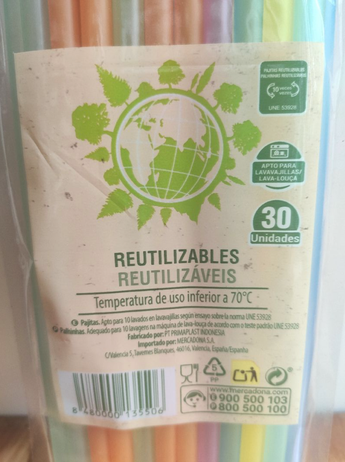 30 pailles multicolores réutilisables, elles passent au lave-vaisselle, utilisables jusqu'à 70 degrés. Paquet neuf, jamais ouvert