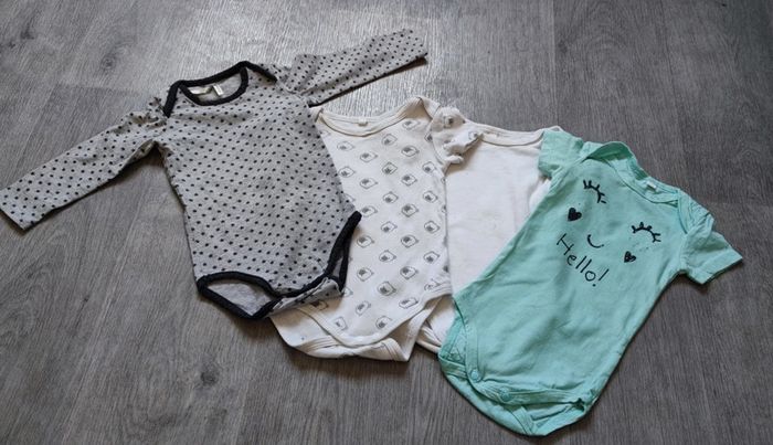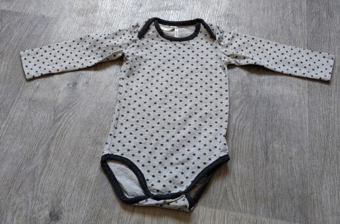 Lot de 4 bodys 12 mois. Celui avec les étoiles est de marque Orchestra. Les autres sont sans marques #celinej_lgarçon12mois