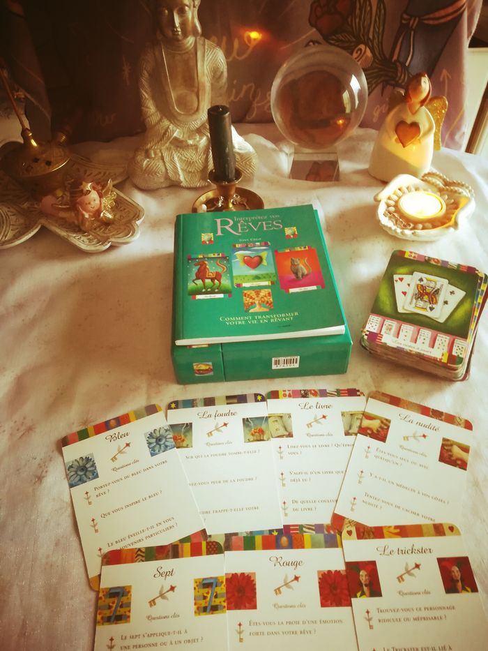 Interprétez vos rêves Apprenez à interpréter vos rêves à l'aide de ce livre de 64 pages illustré et de son jeu magnifique de 100 cartes qui aidera le lecteur à mieux appréhender ses rêves La méthode proposée est toute simple : il suffit de vous remémorer les images de votre rêve et de les retrouver dans le jeu de cartes et le livre. Vous y trouverez des conseils et des éléments de réponse à partir desquels vous pourrez interpréter vos rêves.