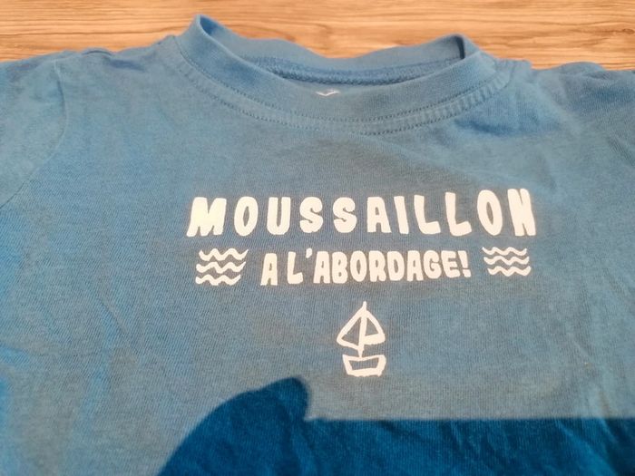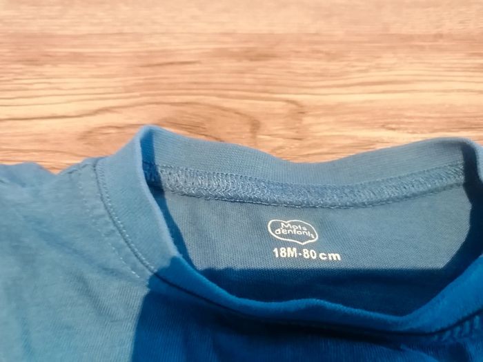 Bonjour, je vends ce tee shirt à manches courtes bleu de la marque mots d'enfants taille 18mois en très bon état. Lavé maison non fumeur.