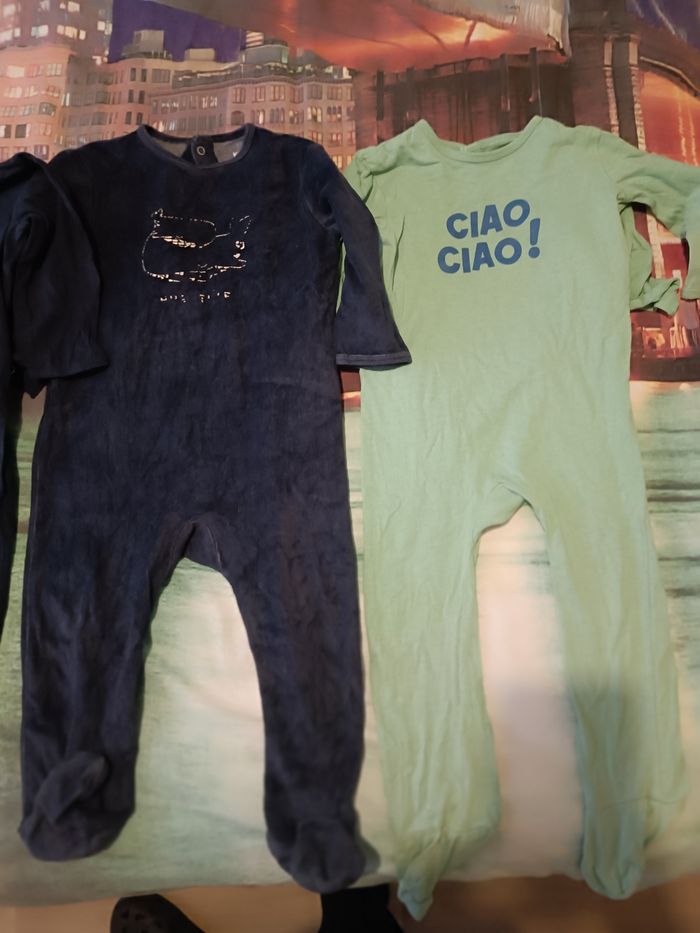 Lot de 4 pyjamas taille 18 mois l'image effacé sur un et deux légèrement abîmé aux pieds voir photo