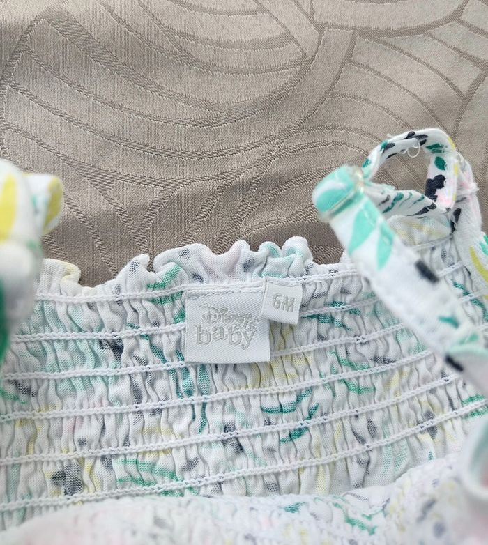 Jolie robe à bretelles. Poitrine élastique. Achetée neuve collection récente. Petit nœud à la ceinture, qui est élastique #ticia886moisfille #lotderobes6mois #robedisney #robeminnie #robeabretelles