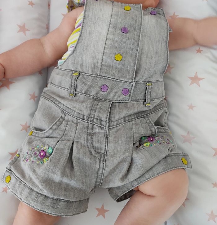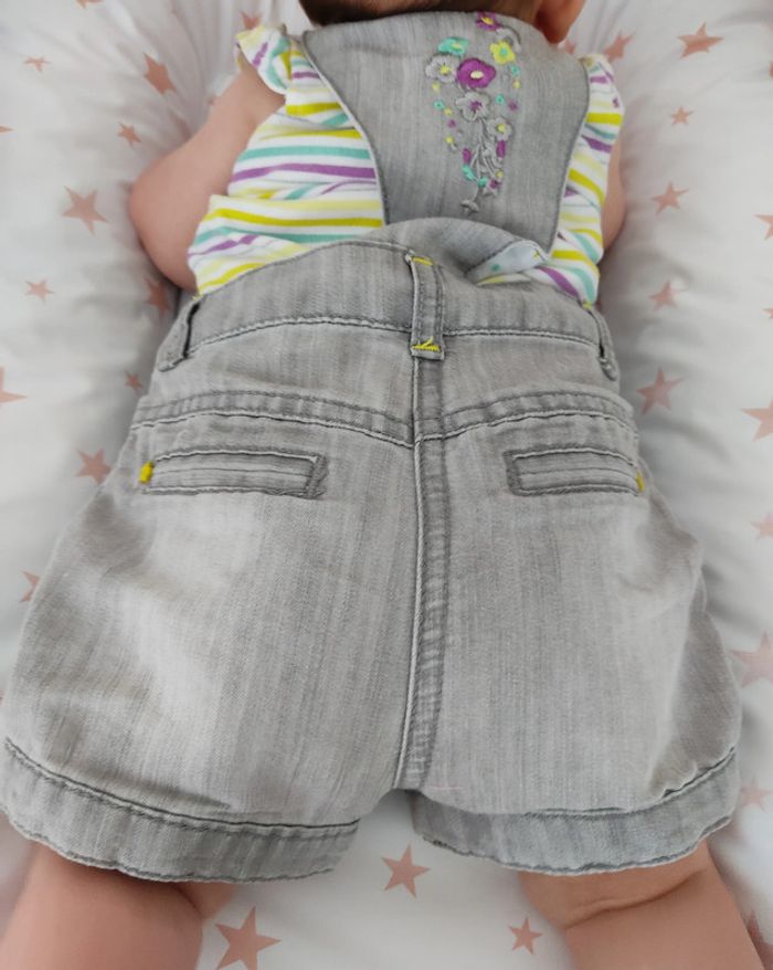 Photo portée sur les dernières photos. État neuf. Ensemble 2 pièces short 6 mois Salopette short + débardeur. Bretelles réglables par une pression. S'ouvre entièrement devant avec des pressions. Taille non réglable. Frais de port à 0.99€ si plusieurs articles achetés. #ticia886moisfille #shortorchestra #salopettebebefille #salopetteshort #shortenjean #ensembleorchestra #ensemble6mois
