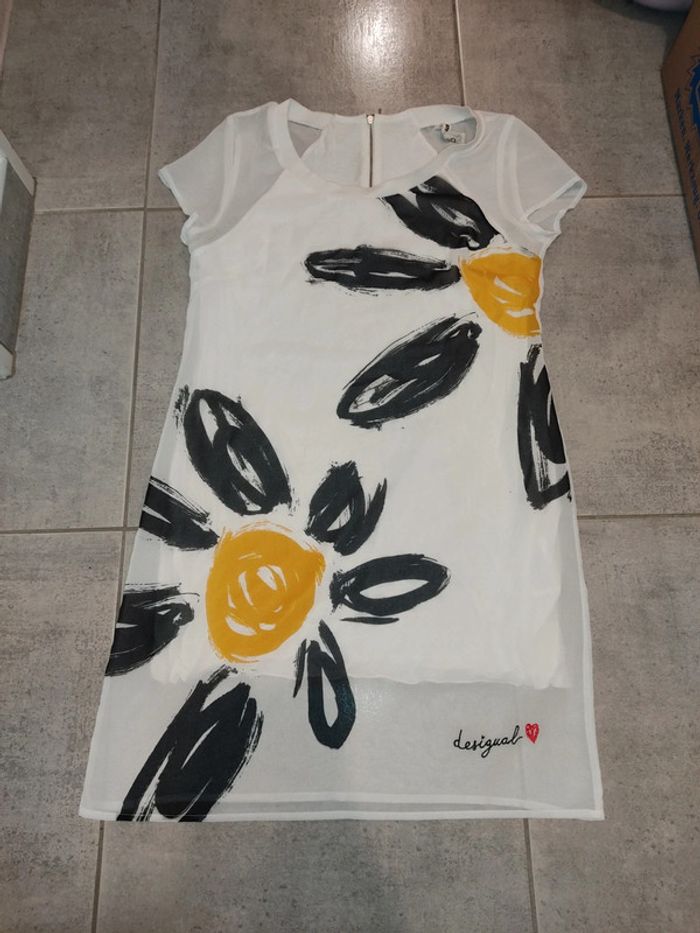 🌸 Robe à manches courtes 🌸 Doublée jusqu'aux cuisses 🌸 Fermeture éclair dans le dos #ticia8840femme #robedesigual #robe40 #robeblanche #robecolorée #robepourlete #robechic #robesobre #robepourletravail #robelégère