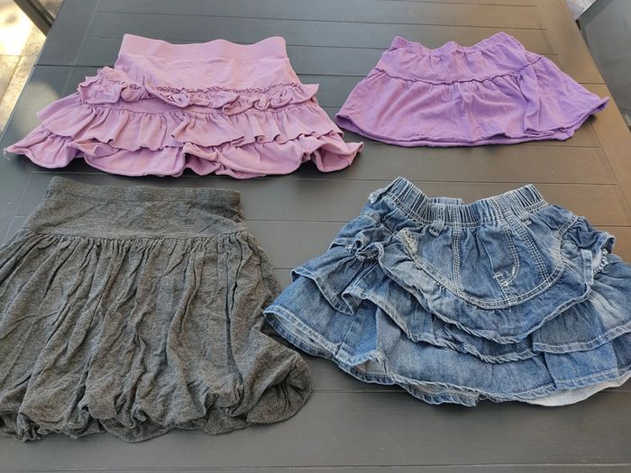 Marques différentes. Lot de 4 jupes. La grise est une jupe boule. #ticia888ansfille #jupe8ans #jupeboule #jupeenjean #jupefine