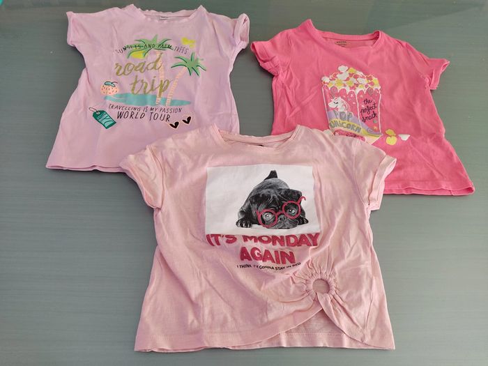 Étiqueté 6 ans mais taille petit, ma fille les mettait en même temps que le 5 ans. #ticia885ansfille #teeshirtmanchescourtes #tshirtmanchescourtes #lotdeteeshirt #teeshirtkiabi #teeshirt6ans #5anskiabi #6anskiabi #maillot