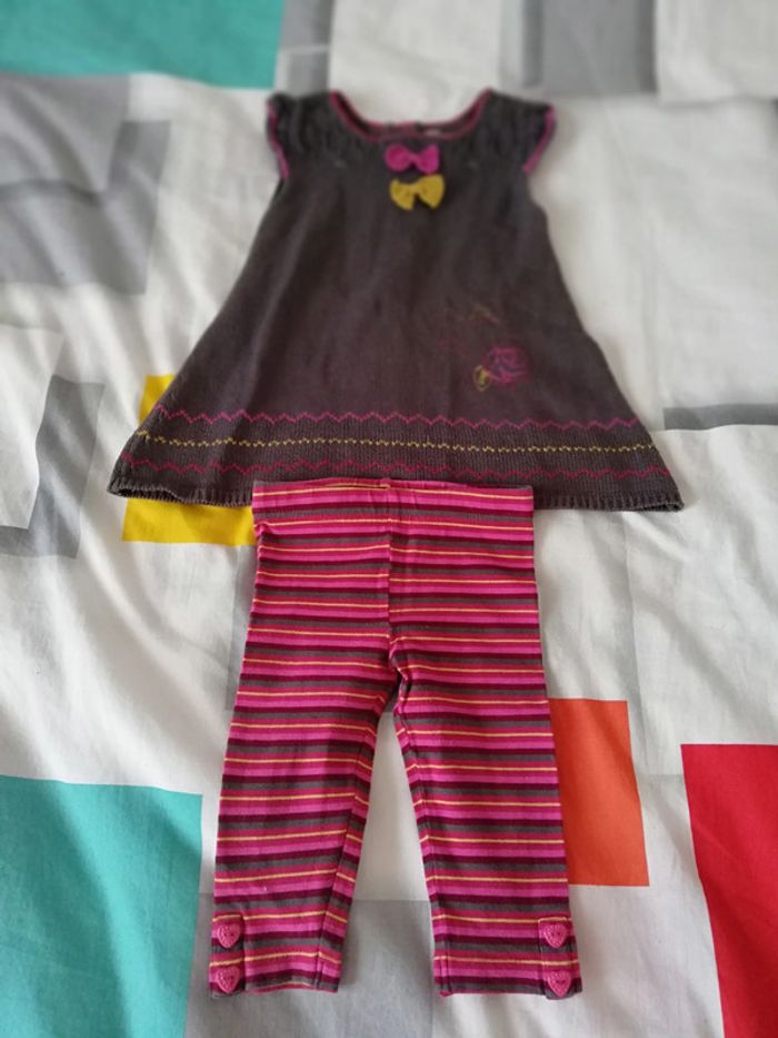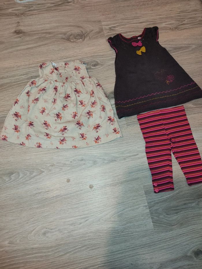 ⏩ 1 robe kitchoun=kiabi ⏩ 1 ensemble robe pull et legging pomme framboise de chez orchestra #ticia889moisfille #robekiabi #robefleurs #ensembleorchestra #robe9mois #lot9mois