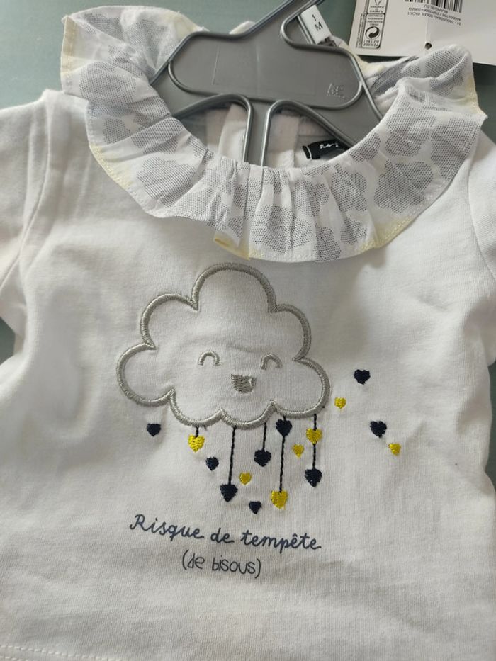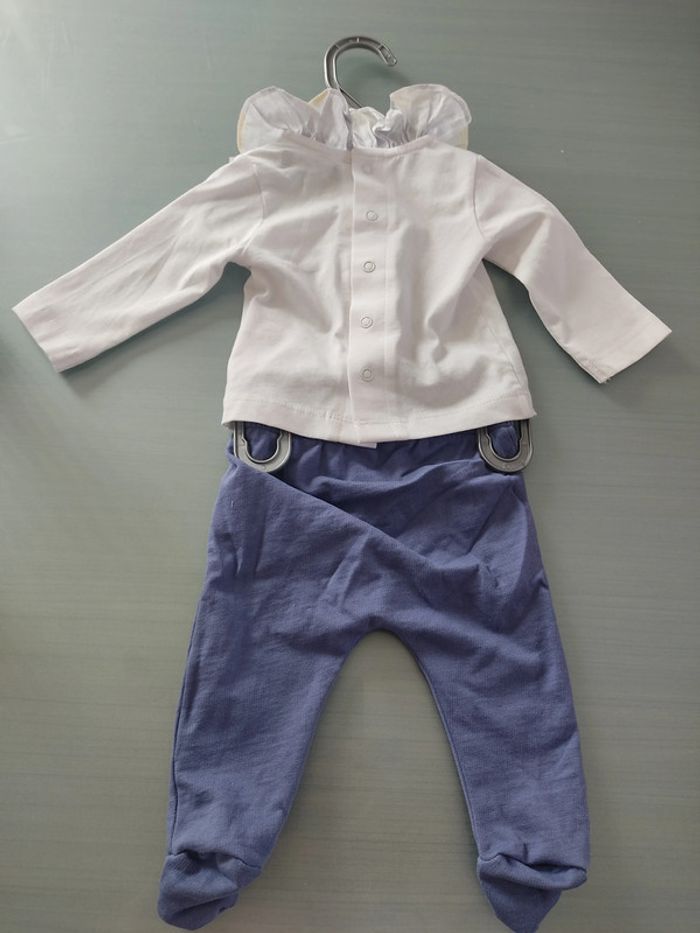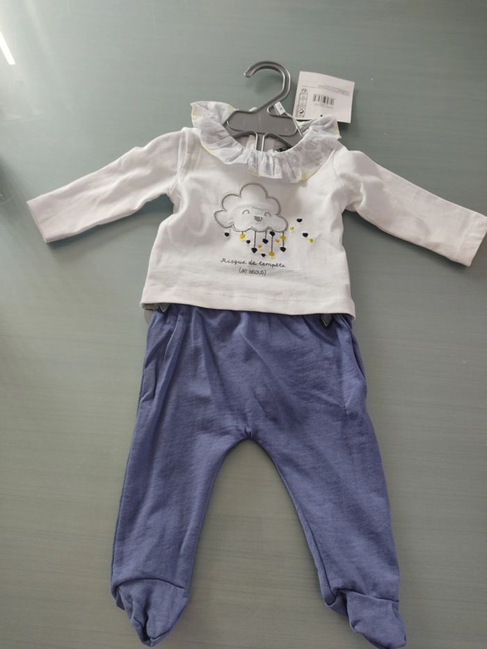 Ensemble 1 mois. Le haut s'ouvre entièrement au dos. Pantalon avec pieds. #ticia881moisfille #ensemble1mois #pantalon1mois #teeshirtmancheslongues #teeshirt1mois