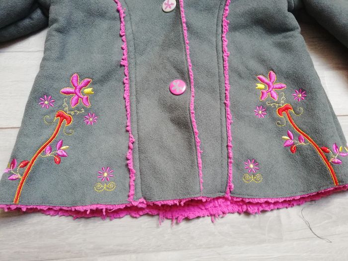 Manteau, daim à l'extérieur, et fourrure à l'intérieur. Plutôt mi saison #ticia889moisfille #manteauorchestra #manteau9mois #manteaugris #manteaupression #veste #blouson