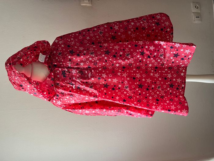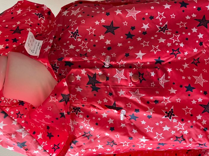 Pancho à capuche imperméable framboise avec des étoiles blanches et bleues marines Taille L Correspond à du 8/12 ans Plusieurs disponibles