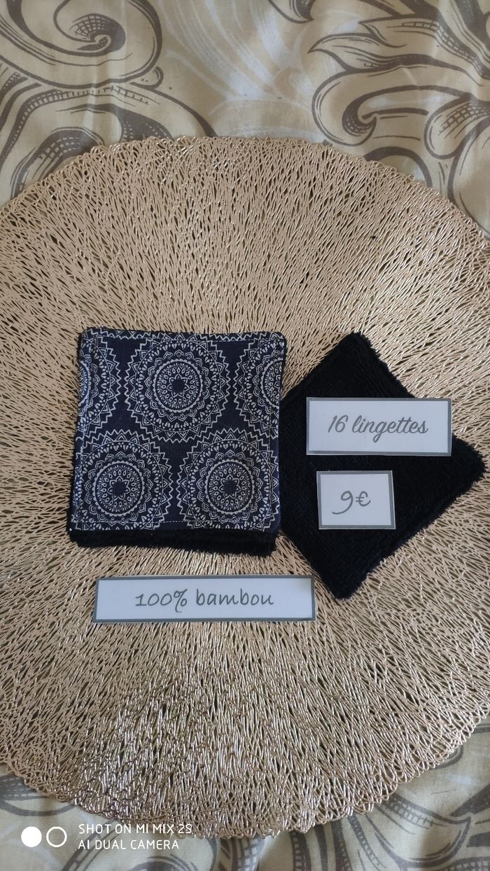 Tissu eko-tex français et éponge bambou noir, 10 X10 cm pour bébé et démaquillante pour les mamans 😀...
