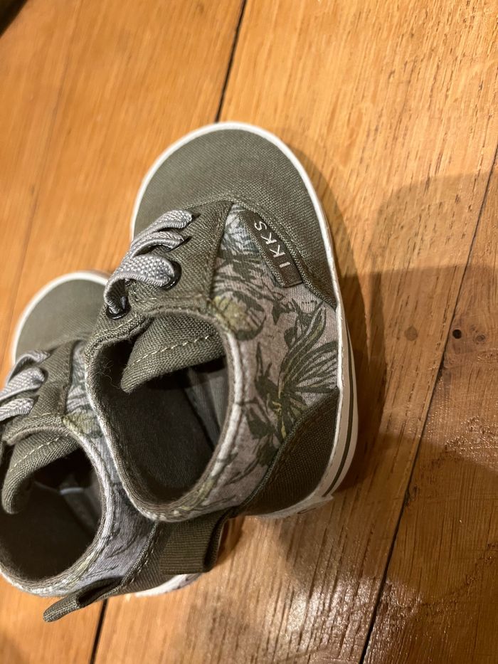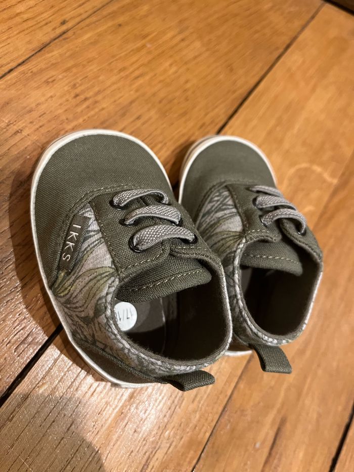 Bonjour Je vends une paire de chaussure nouveau né / bébé IKKS taille 17/18 de couleur kaki. Elle est neuve ( jamais eu l’occasion de la porter) Je la vends à 10€