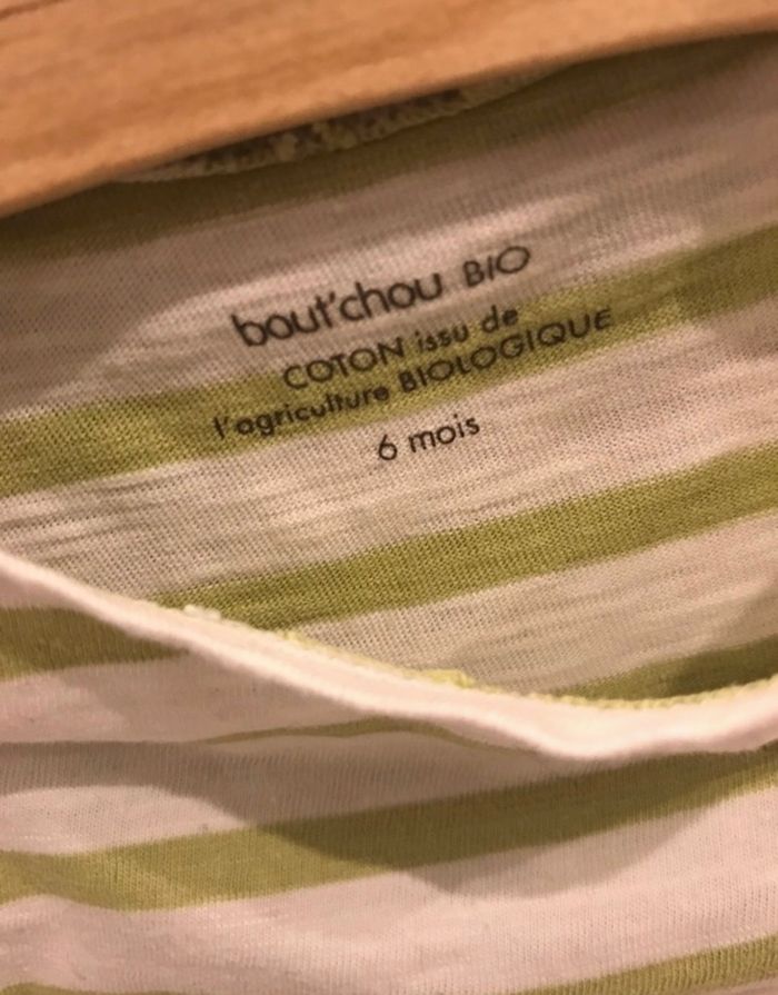 Haut bout’chou Coton bio Vert et blanc Taille 6 mois