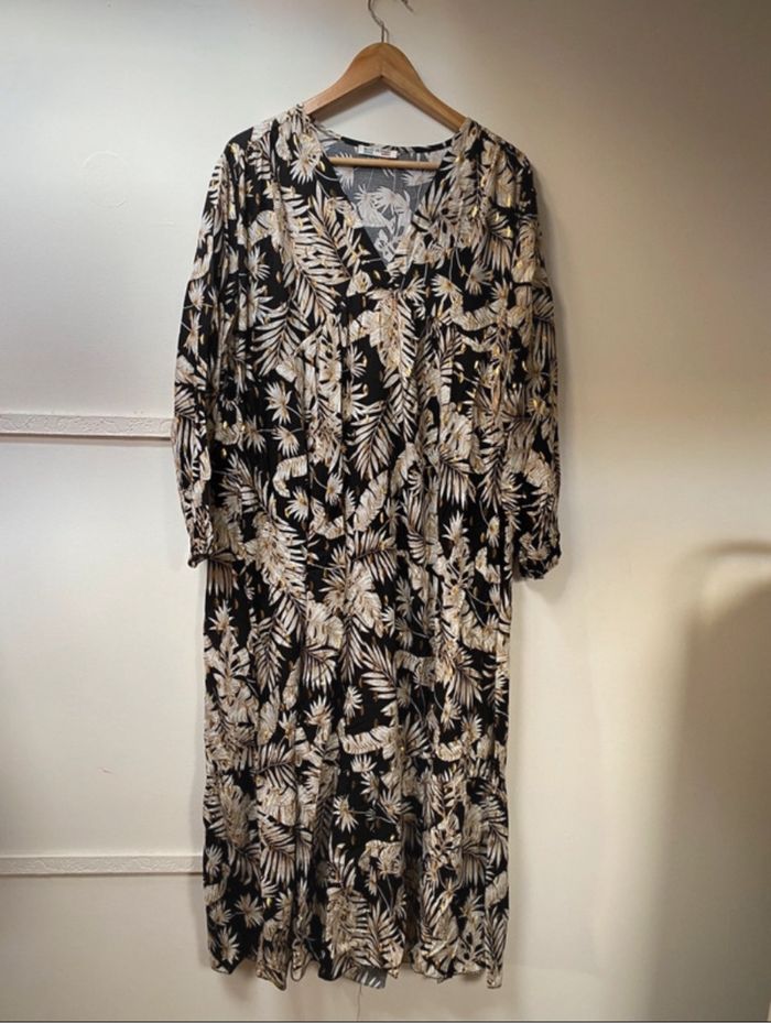 robe longue à fleurs et feuilles beiges et dorées - photo numéro 1