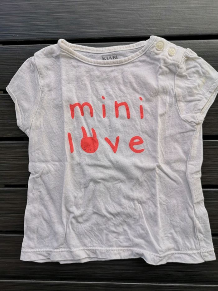 Kiabi éco conception Taille 9mois 69/72cm Tee-shirt neuf, jamais porté Blanc motif "mini love" rose pêche #simdeline9mois #neuf
