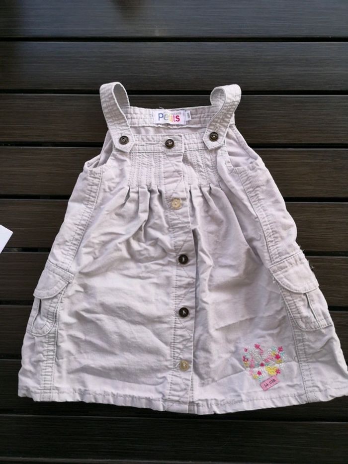 La compagnie des petits Taille 9mois Robe gris clair doublée, motif brodé devant (voir photos) Ouverture via boutons devant Poches sur le côté Très bon état, très peu portée (taille ne correspondant pas à la saison) #simdeline9mois