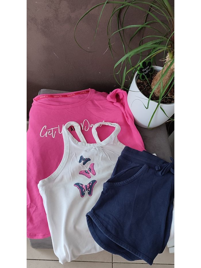 Tee-shirt rose Danse Domyos TBE conçut pour la danse Top blanc dos nageur Vertbaudet, avec papillon crochet dans le dos, plus long dans le dos. Short 122/128 Pepperts! Taille élastique avec lien de serrage Maison non fumeur sans animaux