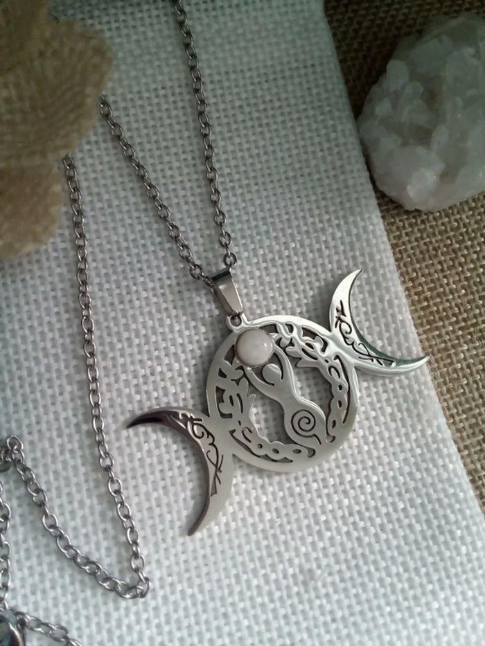 Collier pendentif déesse de la lune et pierre de lune - photo numéro 1