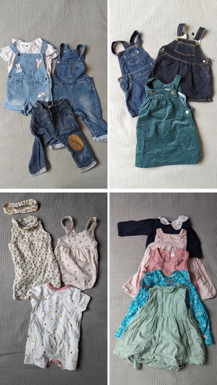 Lot de 38 pièces 2 pyjamas à nouer + 1 bonnet 3 body manches longues 1 body manches courtes 2 pyjamas/combinaisons légers 2 pyjamas légers 1 tenue de plage protection solaire 1 maillot de bain 1 jean 1 salopette en jean 1 ensemble salopette short Minnie 2 robes salopette en jean 1 robe salopette velours 4 robes manches courtes 1 robe manches longues 3 combinaisons jambes courtes 4 leggings 1 jean slim 3 tee-shirt manches courtes 4 tee-shirt manches longues